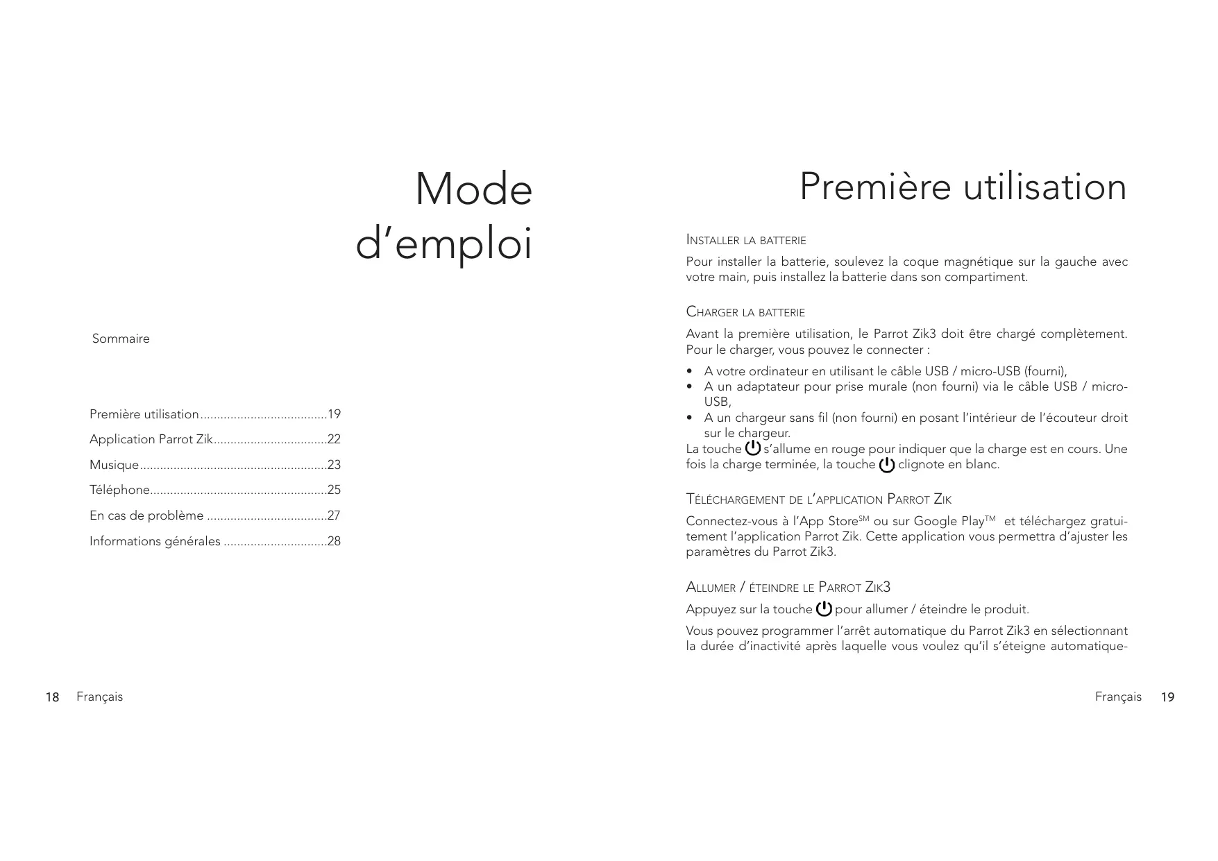 ZiK 3 CHARGE NOiR GRENE - Casque audio PARROT - Notice d'utilisation et mode d'emploi gratuit