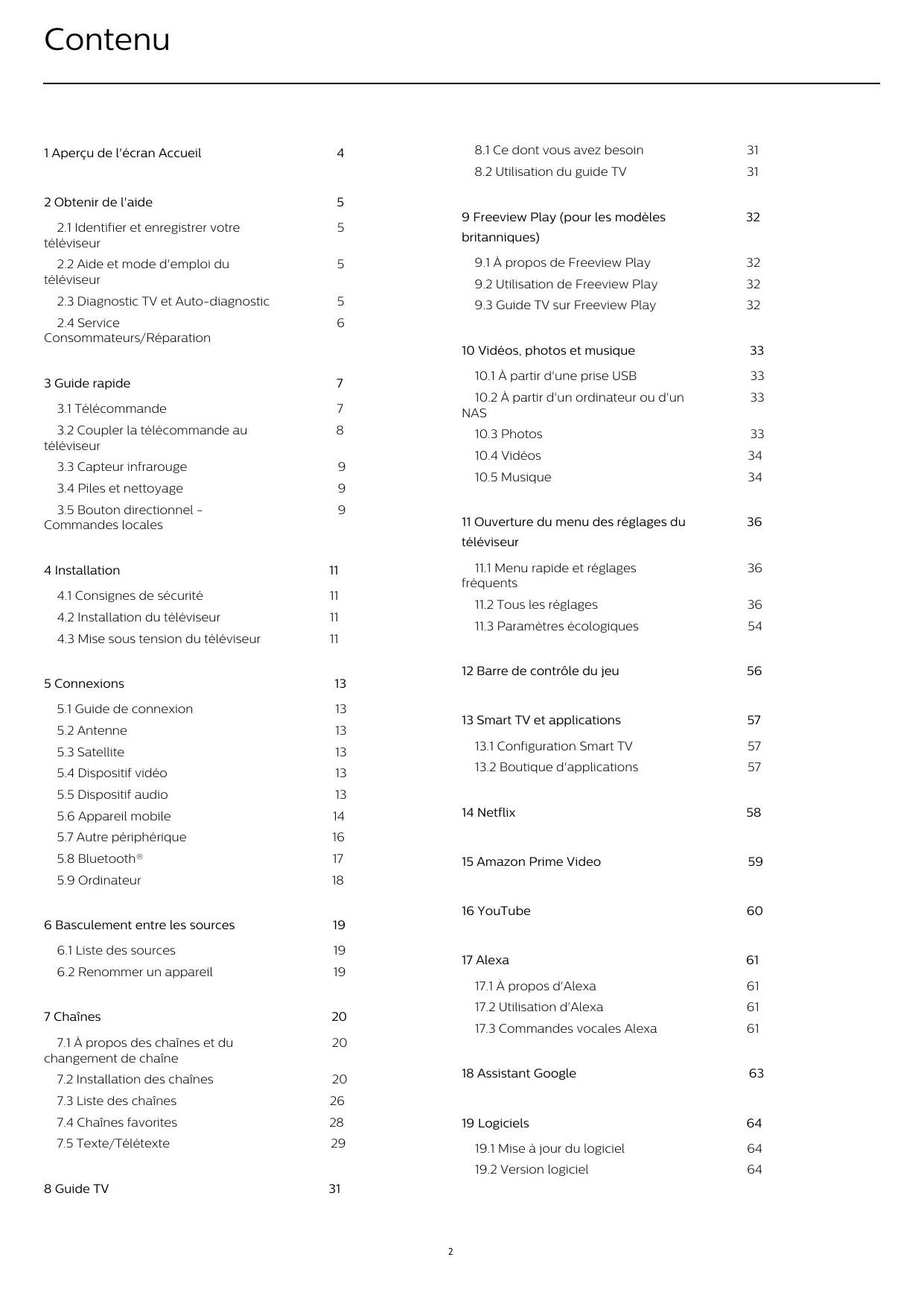 Pour télécharger l'aide (mode d'emploi), rendez-vous sur le site Web www.philips.com/TVsupport