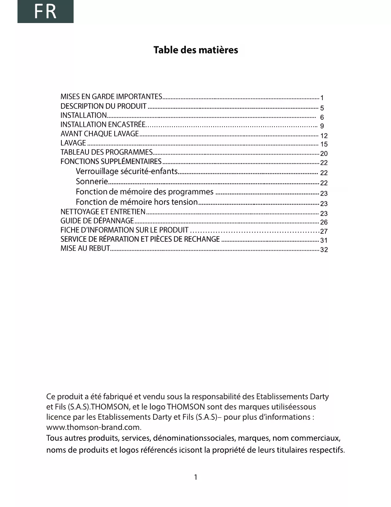 Retrouvez gratuitement la notice de l'appareil TWBI914ALAVE THOMSON au format PDF.