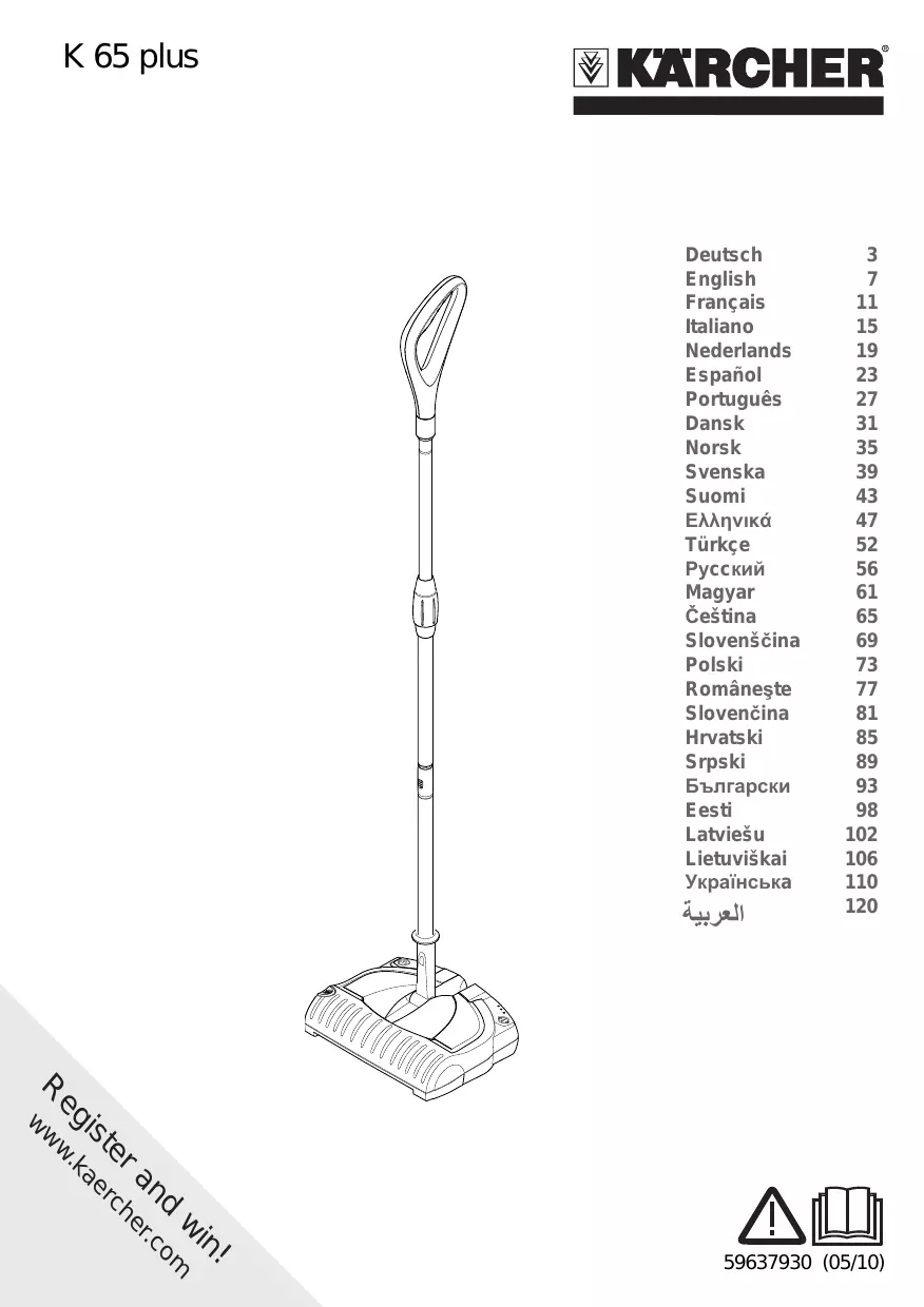 Retrouvez gratuitement la notice de l'appareil K 65+ KARCHER au format PDF.