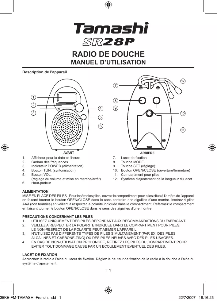 SR 28 P - Radio de douche TAMASHI - Notice d'utilisation et mode d'emploi gratuit