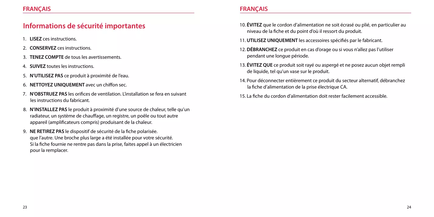 9. NE RETIREZ PAS le dispositif de sécurité de la fiche polarisée.