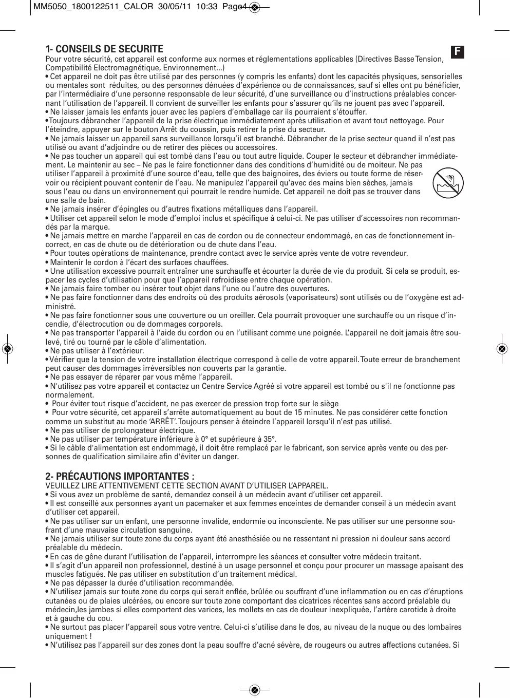 MM5050CO - Appareil de massage CALOR - Notice d'utilisation et mode d'emploi gratuit