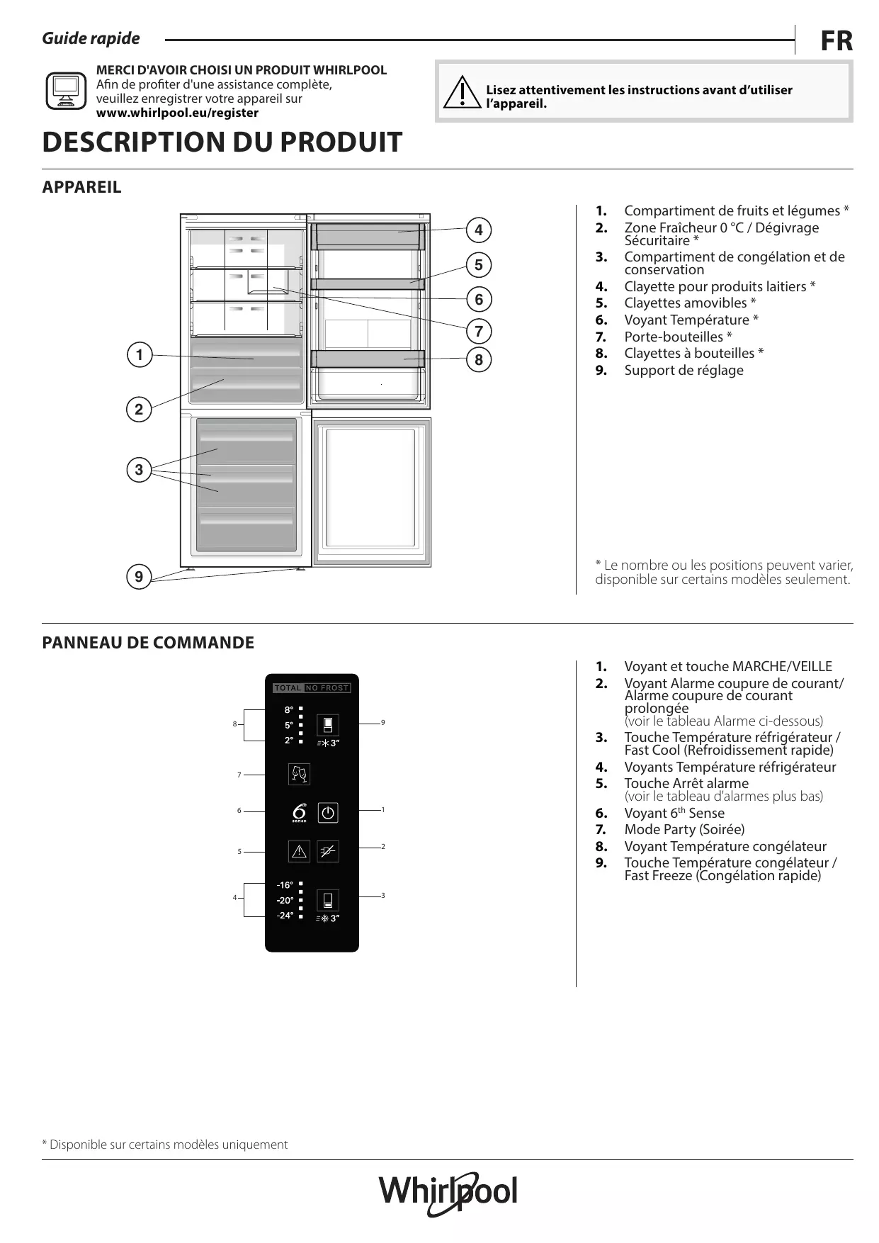 WB70E973W - Réfrigérateur congélateur WHIRLPOOL - Notice d'utilisation et mode d'emploi gratuit