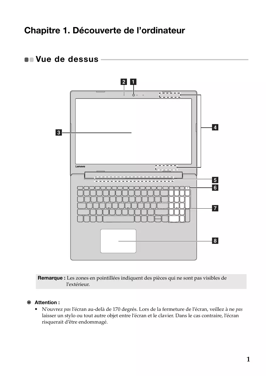 • Les illustrations utilisées dans ce chapitre représentent le modèle Lenovo ideapad 330‐ 17IKB, sauf indication contraire. • Les illustrations dans ce manuel peuvent présenter des différences par rapport au produit réel. Veuillez vous reporter au produit que vous possédez. • Le service CRU n’est disponible que dans certains pays.