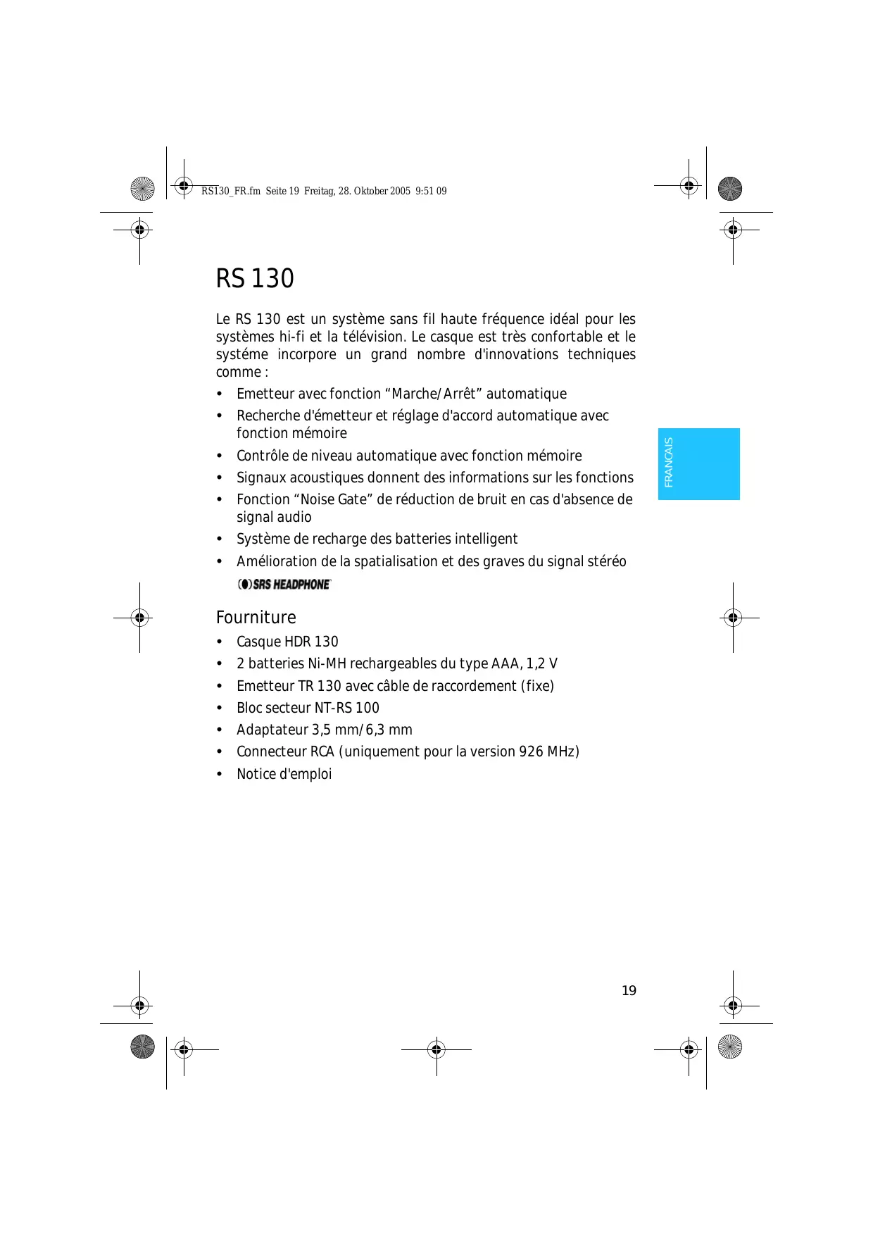 MODE D'EMPLOI RS 130 EOY09 SENNHEISER