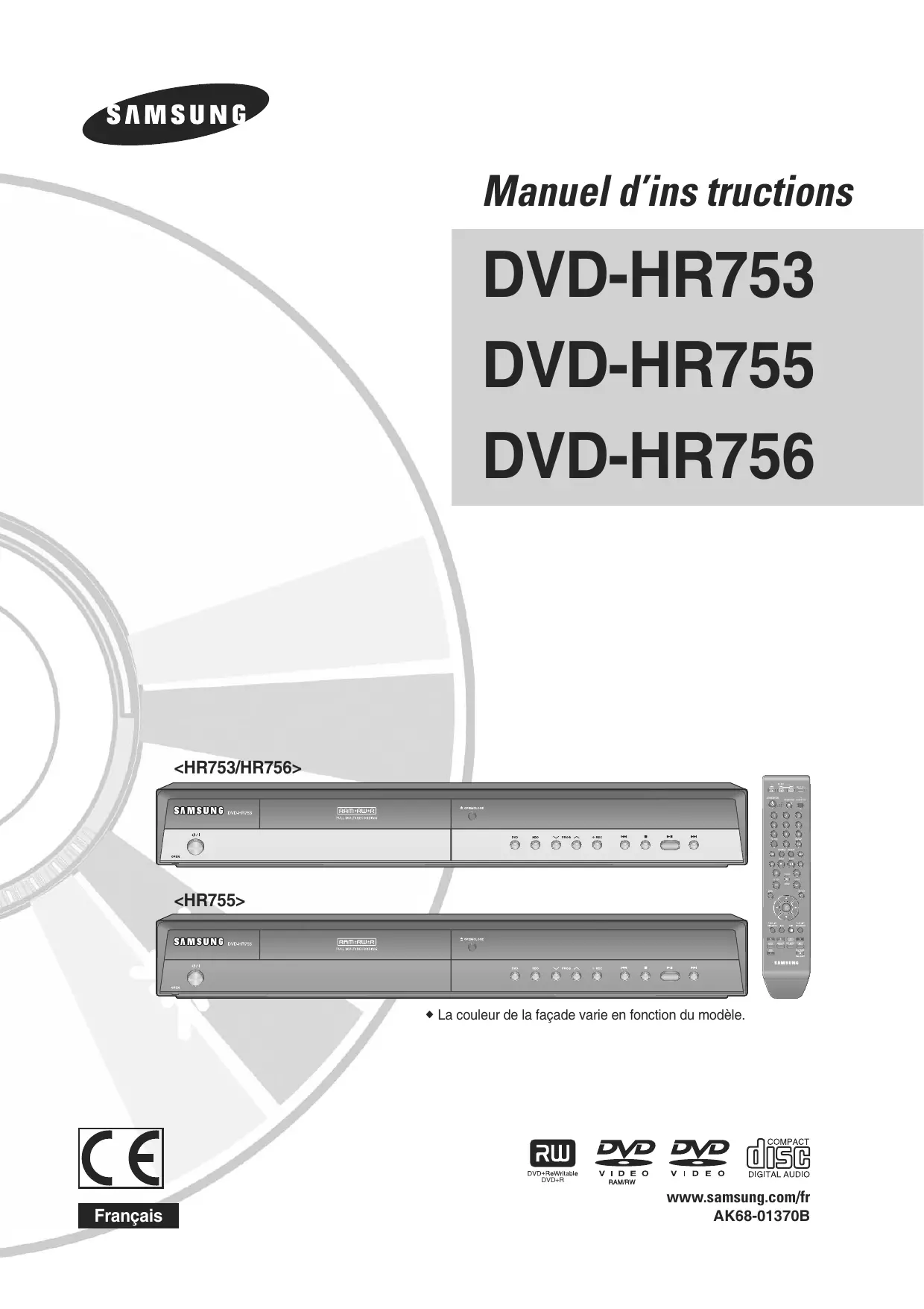 Retrouvez gratuitement la notice de l'appareil DVD-HR755 SAMSUNG au format PDF.