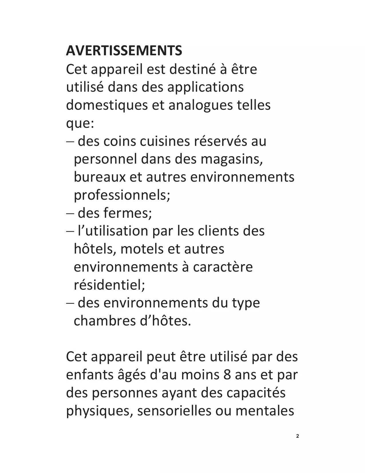 INSTRUCTIONS IMPORTANTES DE SÉCURITÉ x Le lave-vaisselle ne doit être utilisé que pour le lavage de la vaisselle et des ustensiles de cuisine. x Ne déconnectez jamais l’appareil du réseau électrique en tirant sur le câble d'alimentation, saisissez toujours la prise. x Ne touchez jamais le lave-vaisselle lorsque vous êtes pieds nus ou que vous avez les mains ou les pieds mouillés. x N’ouvrez pas la porte durant un cycle de lavage car de la vapeur et de l’eau chaude pourraient être éjectées du lave-vaisselle. x Si vous souhaitez vous débarrasser d’un appareil en fin de vie comportant une serrure / un loquet sur la porte, veillez à ce que celui-ci soit désactivé afin d'éviter que des enfants ne se retrouvent enfermés à l'intérieur en jouant. x Ne laissez pas les enfants grimper sur la porte du lave-vaisselle et ne mettez aucun objet lourd sur la porte lorsqu'elle est ouverte; cela risquerait de déséquilibrer l'appareil.