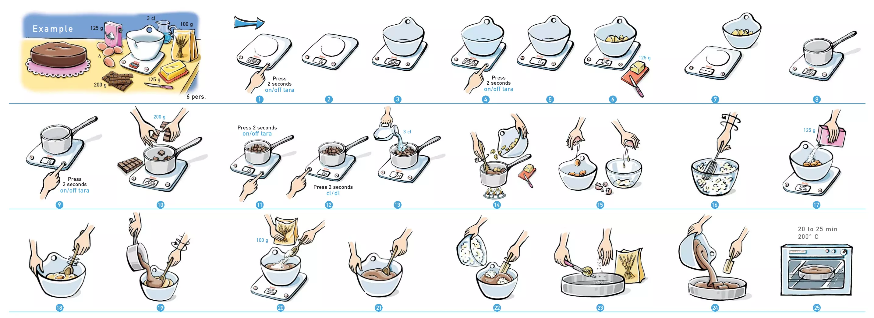 | Mode d'emploi | Instructions illustrées pour pesée et cuisson |