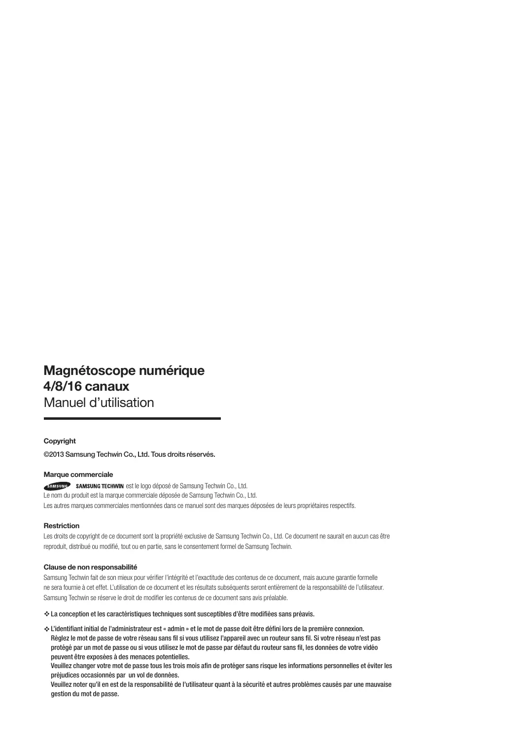 ©2013 Samsung Techwin Co., Ltd. Tous droits réservés.