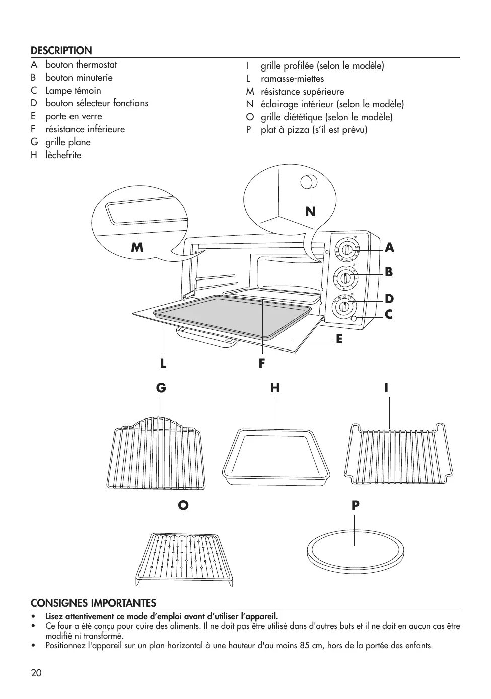 Accessoires inclus Grille, plateau de cuisson