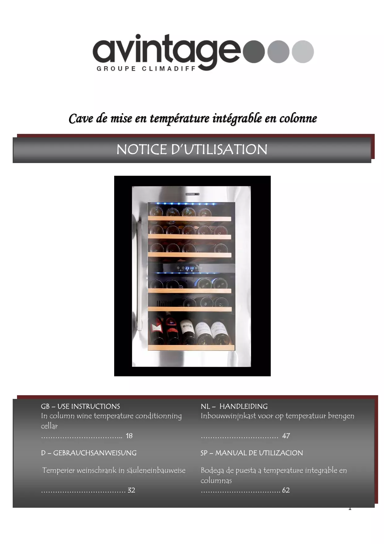 AV93X3ZI - Cave à vin AVINTAGE - Notice d'utilisation et mode d'emploi gratuit