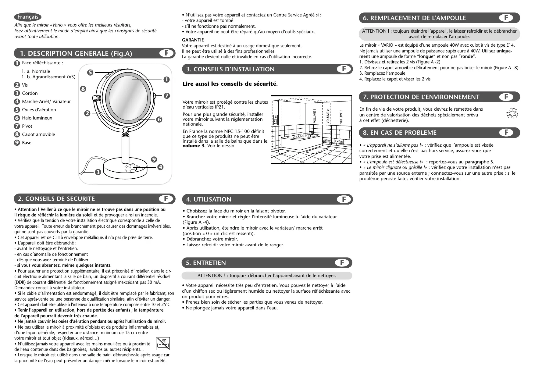 Afin que le miroir «Vario » vous offre lesassageurs résultats, lisez attentivement le mode d'emploi ainsi que les consignes de sécurité avant toute utilisation.