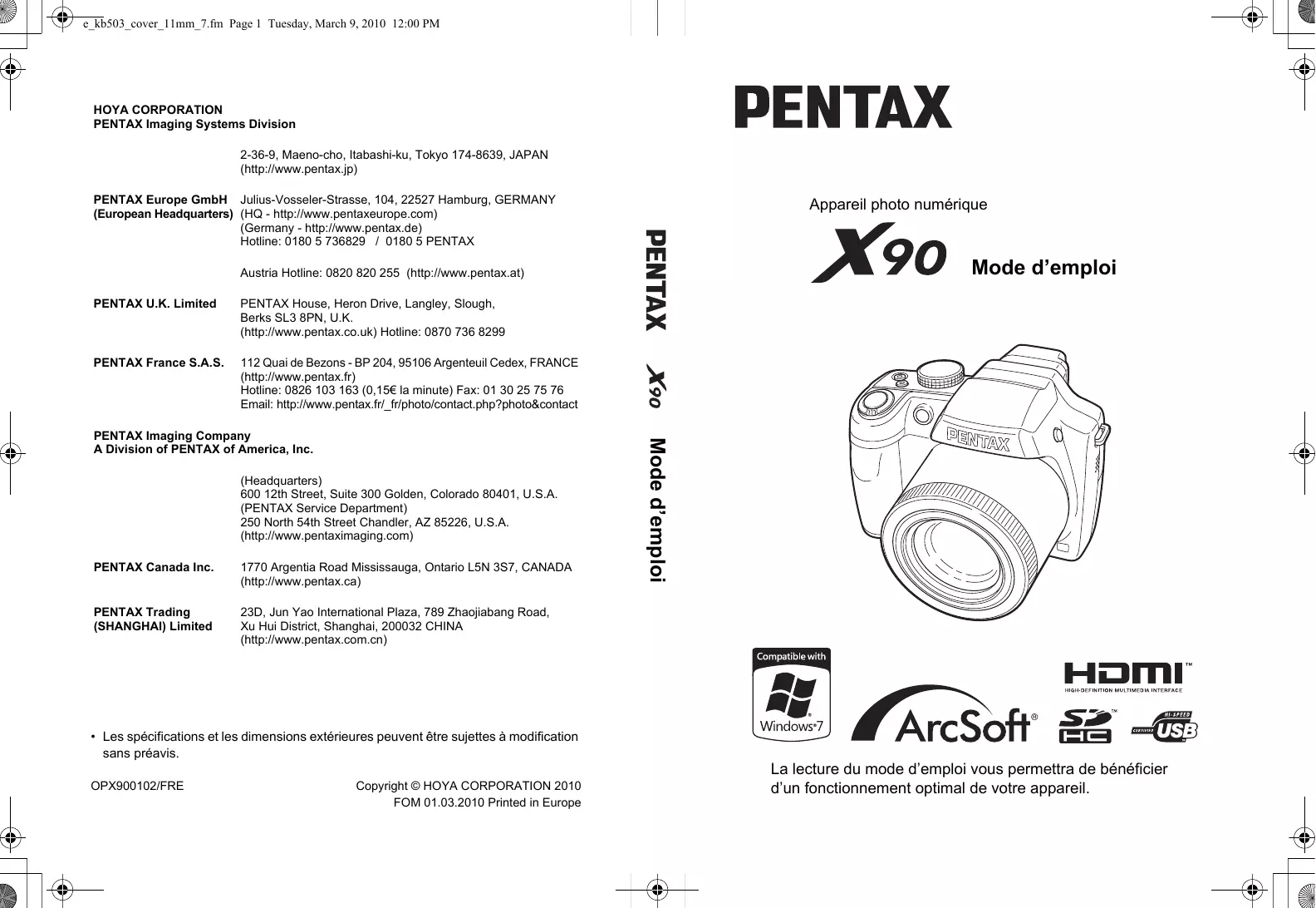 Retrouvez gratuitement la notice de l'appareil X90 PENTAX au format PDF.