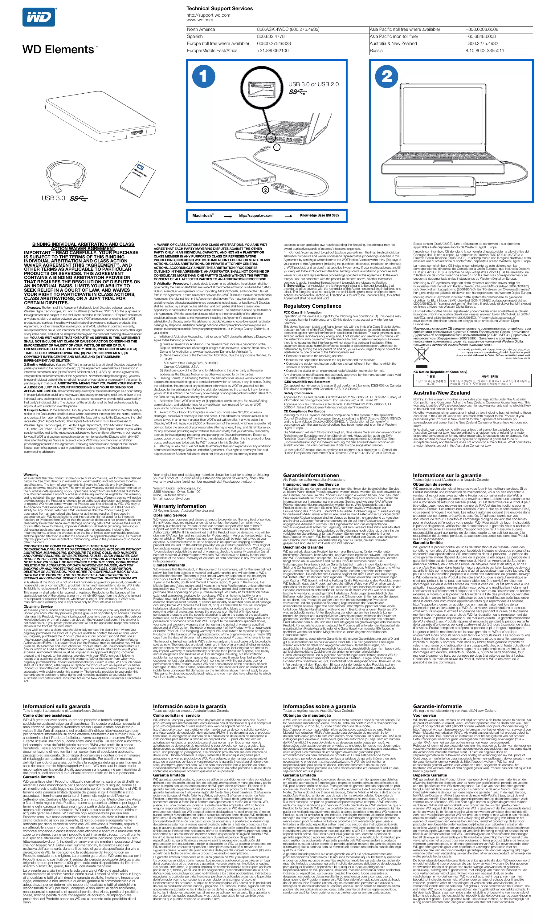 “Declaración de conformidad” de acuerdo con las directivas correspondientes y se encuentra documentada en las instalaciones de Western Digital en Europa. Märkning av CE-symbolen anger att detta systemet uppfyller kraven enligt det Europeiska Parlamentet och Rådets direktiv, inklusive EMC-direktivet (2004/108/EC) och Direktivet om Lågspänning (2006/95/EC). En ”Försäkran om Överensstämmelse” har gjorts enligt de gällande direktiven och har registrerats hos Western Digital Europa. Merking med CE-symbolet indikerer dette systemets overholdelse av gjeldende direktiver for EU, inkludert EMC-direktivet (2004/108/EC) og lavspenningsdirektivet CE С С , (2004/108/EC) Obtention de service