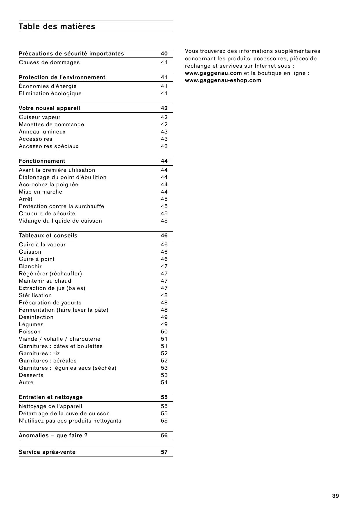 VR414110 - Cuiseur vapeur GAGGENAU - Notice d'utilisation et mode d'emploi gratuit