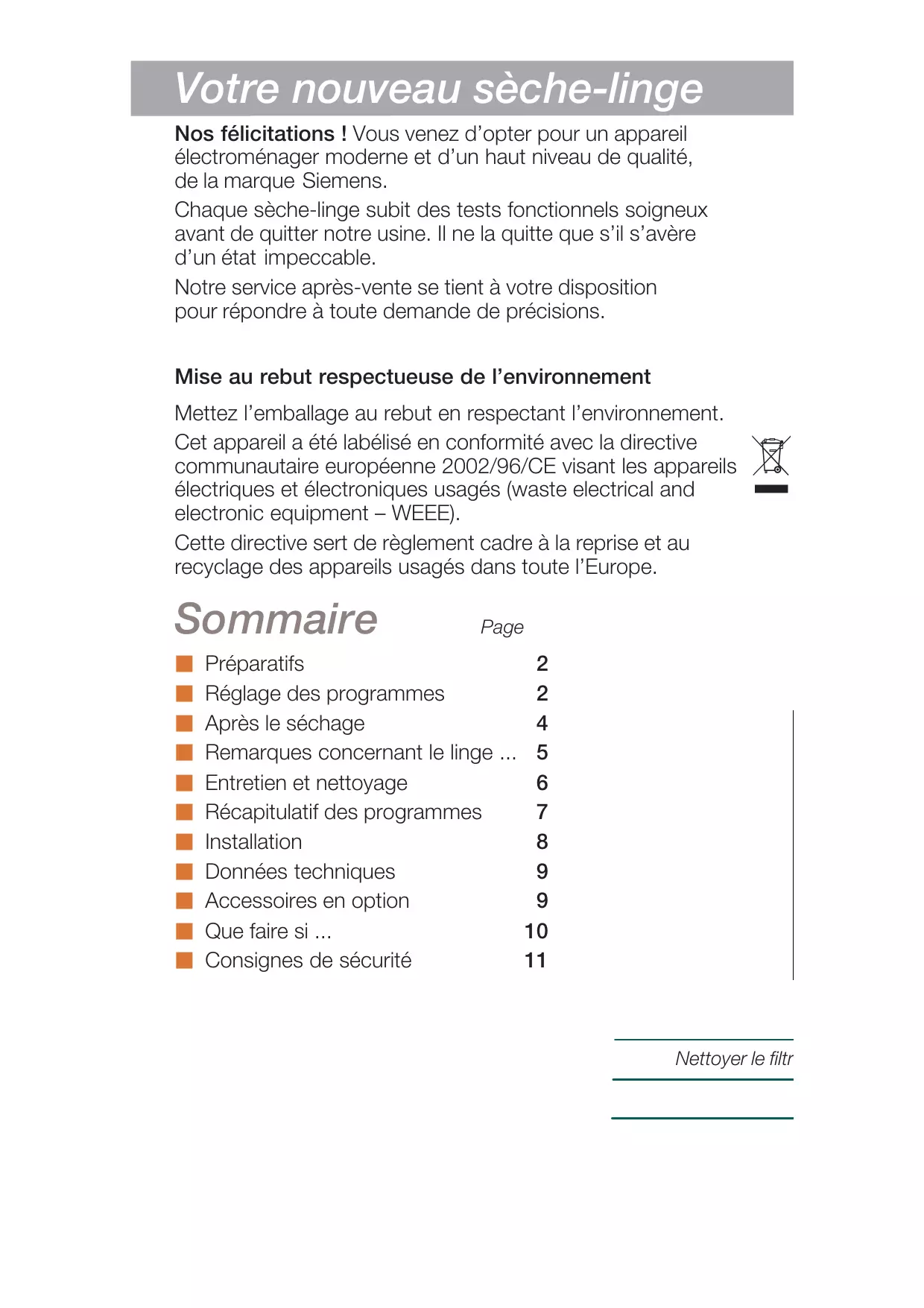 WT 44 E 183 FR BLANC - Sèche-linge SIEMENS - Notice d'utilisation et mode d'emploi gratuit