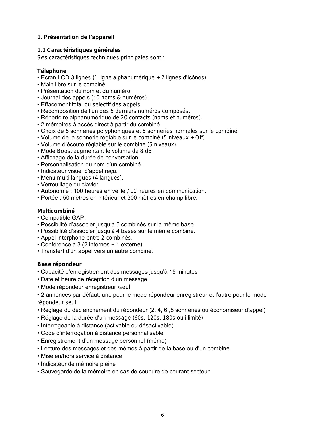 1.1 Caracteristiques generales 6