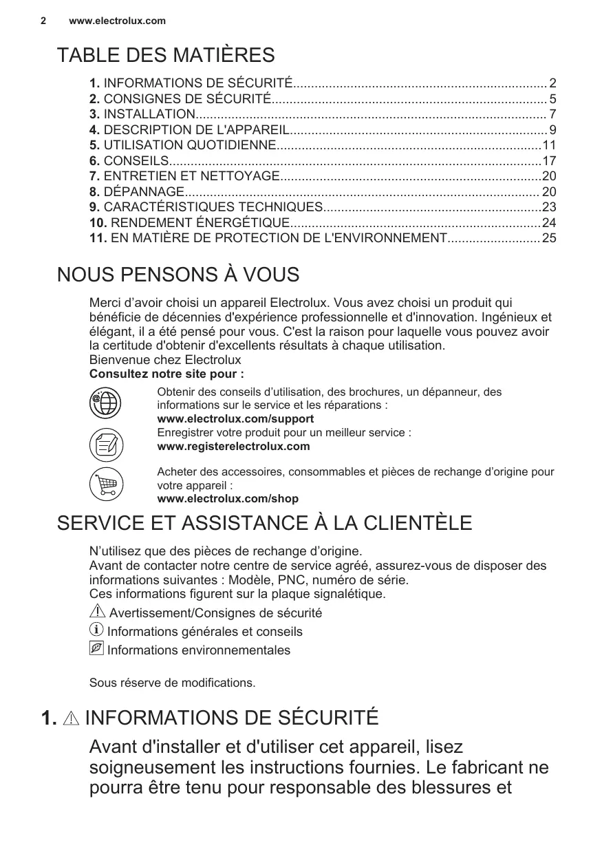 élégant, il a été pensé pour vous. C'est la raison pour laquelle vous pouvez avoir la certitude d'obtenir d'excellents résultats à chaque utilisation. Bienvenue chez Electrolux Consultez notre site pour :