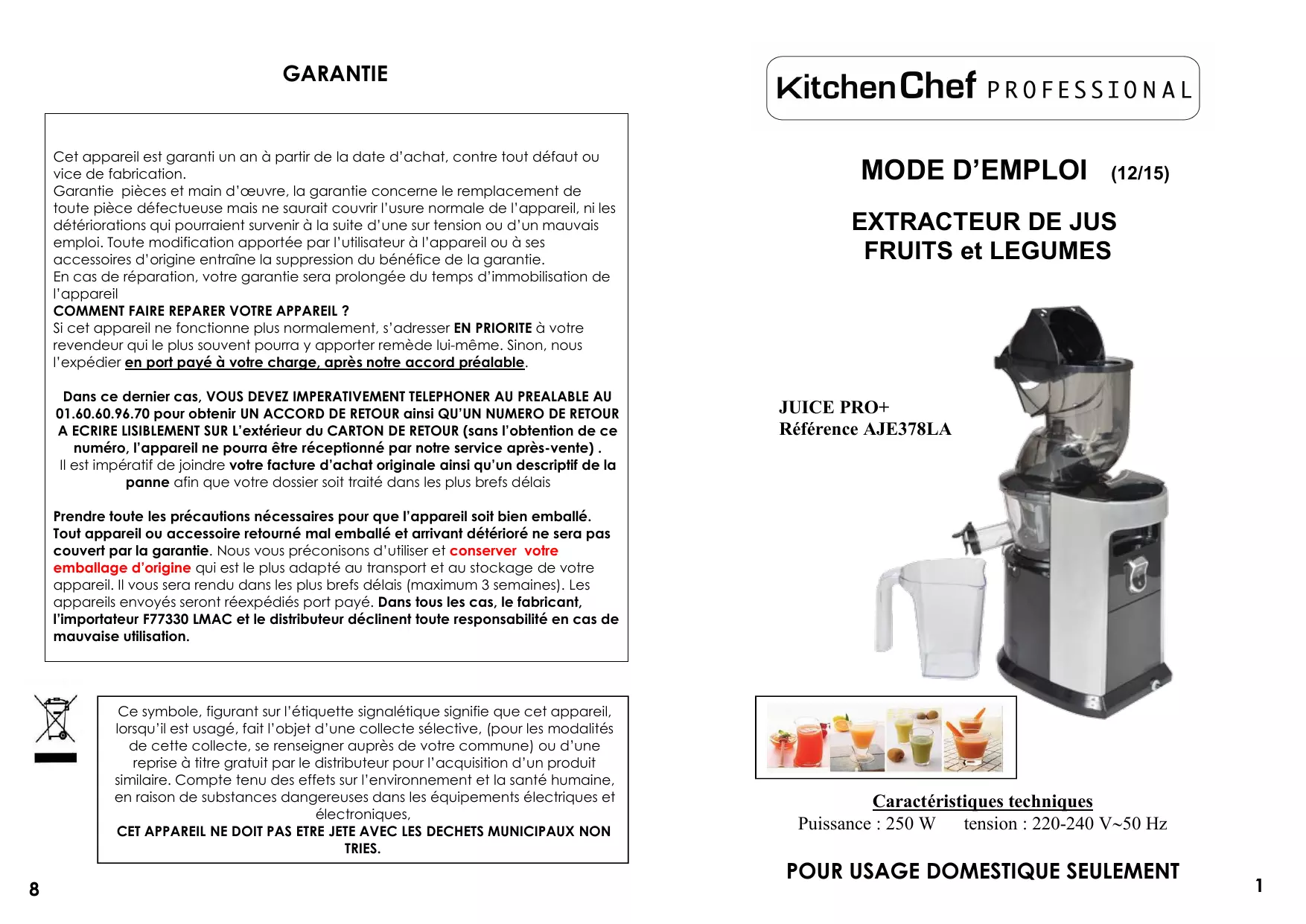 AJE378LA - Extracteur de jus RITCHEN CHEF - Notice d'utilisation et mode d'emploi gratuit