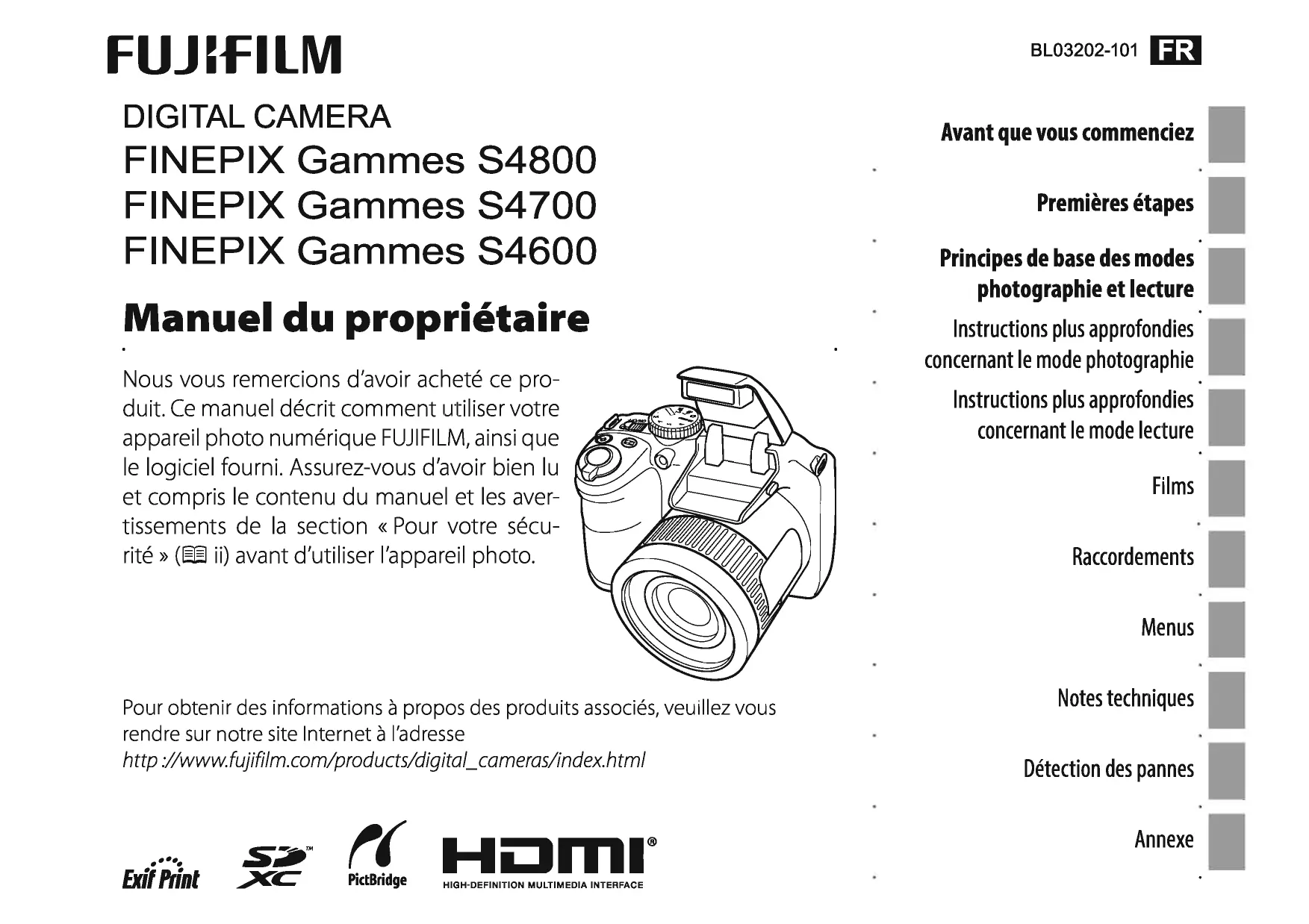 S4600+HOUSSE+SD 8GO - Appareil photo numérique FUJIFILM - Notice d'utilisation et mode d'emploi gratuit