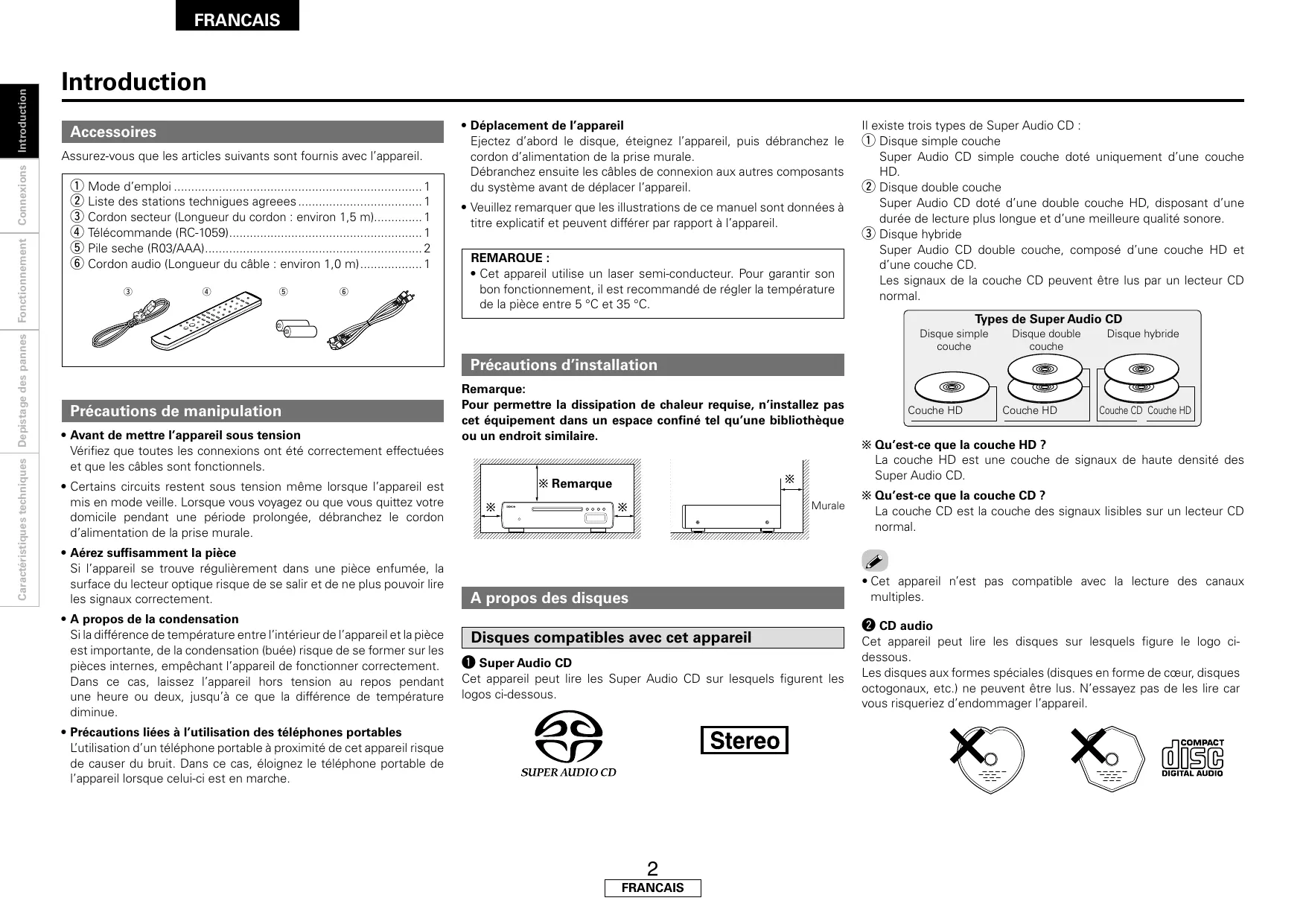 Nous you remercions d'avoir acquis cet appeareil DENON. Afin de garantir son bon fonctionnement, veuillez dire attentivement les instructions d'utilisation suivantes avant d'utiliser cet appeareil.