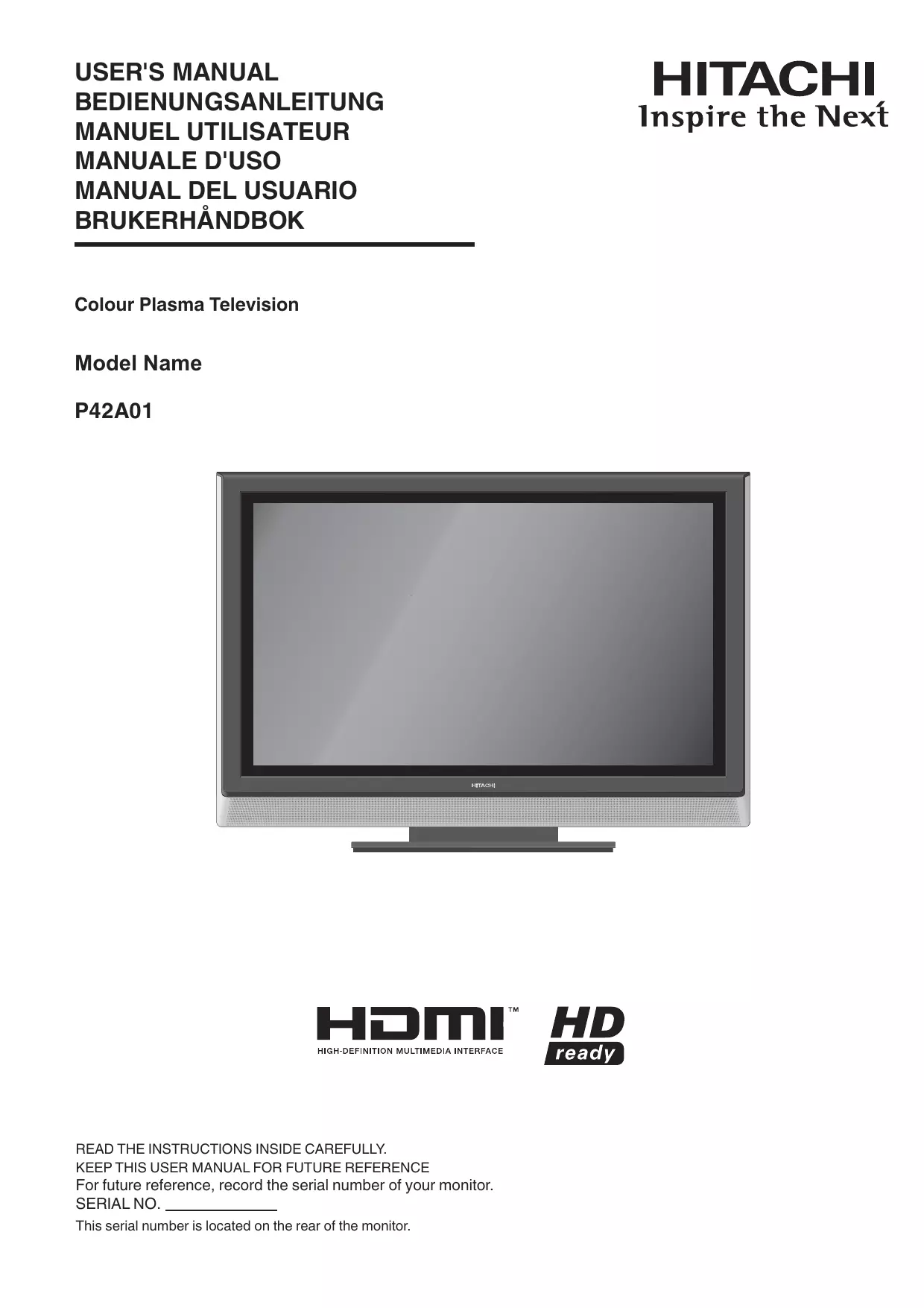 Retrouvez gratuitement la notice de l'appareil P42A01 HITACHI au format PDF.