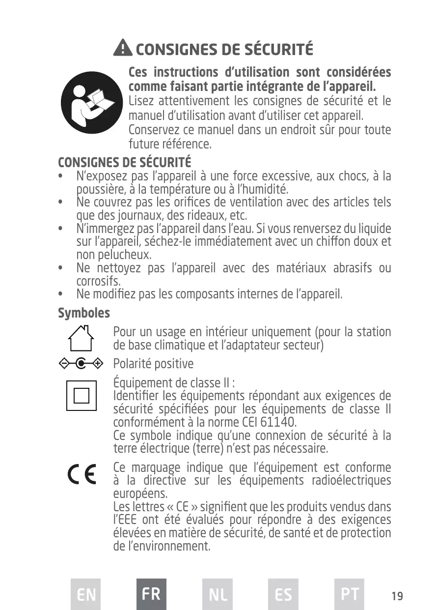 Pour un usage en interieur uniquement (pour la station de base climatique et l'adaptateur secteur)