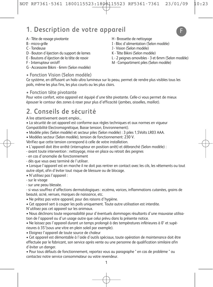 RF 5361 CO LISSE - Rasoir électrique CALOR - Notice d'utilisation et mode d'emploi gratuit