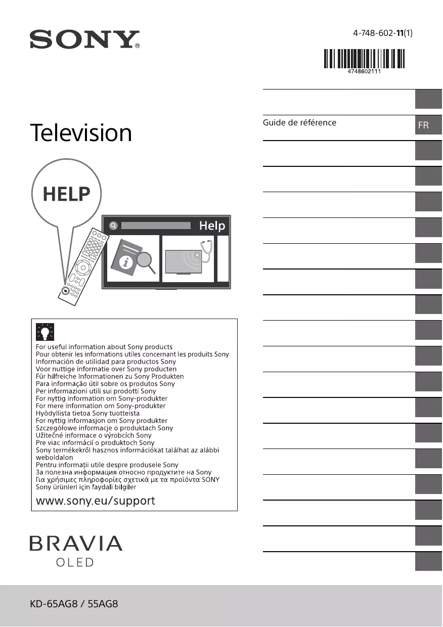 KD65AG8BAEP - TV SONY - Notice d'utilisation et mode d'emploi gratuit