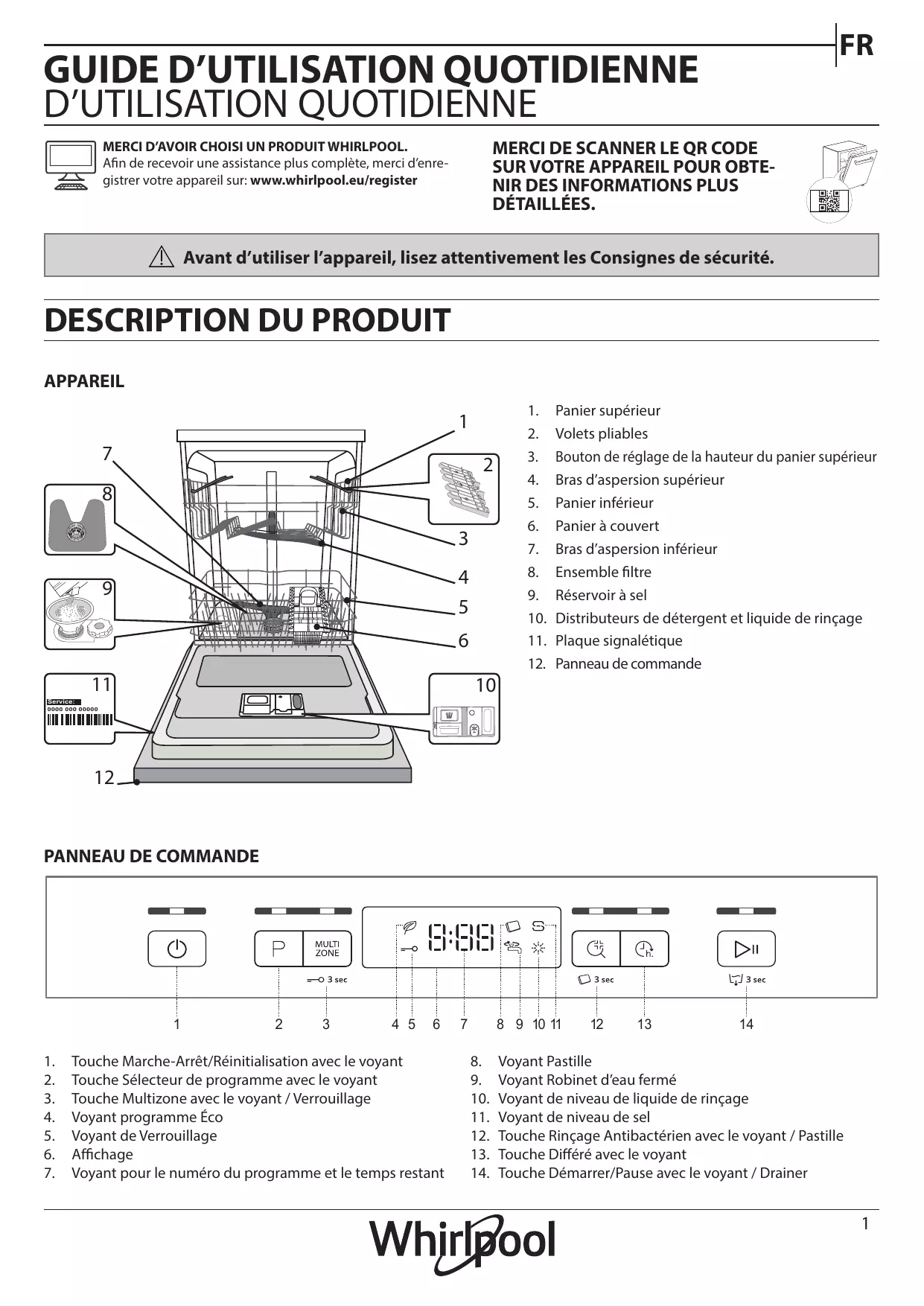 WFC3C34 - Lave-vaisselle WHIRLPOOL - Notice d'utilisation et mode d'emploi gratuit