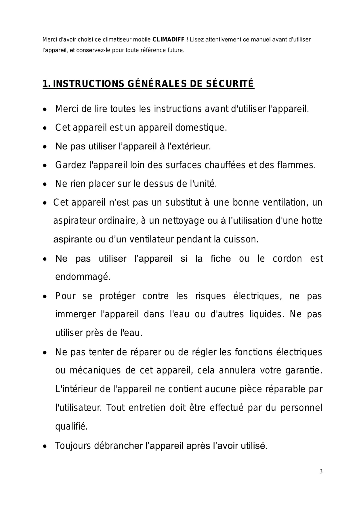 Notice CLIMADIFF CLIMATISEUR - page 3