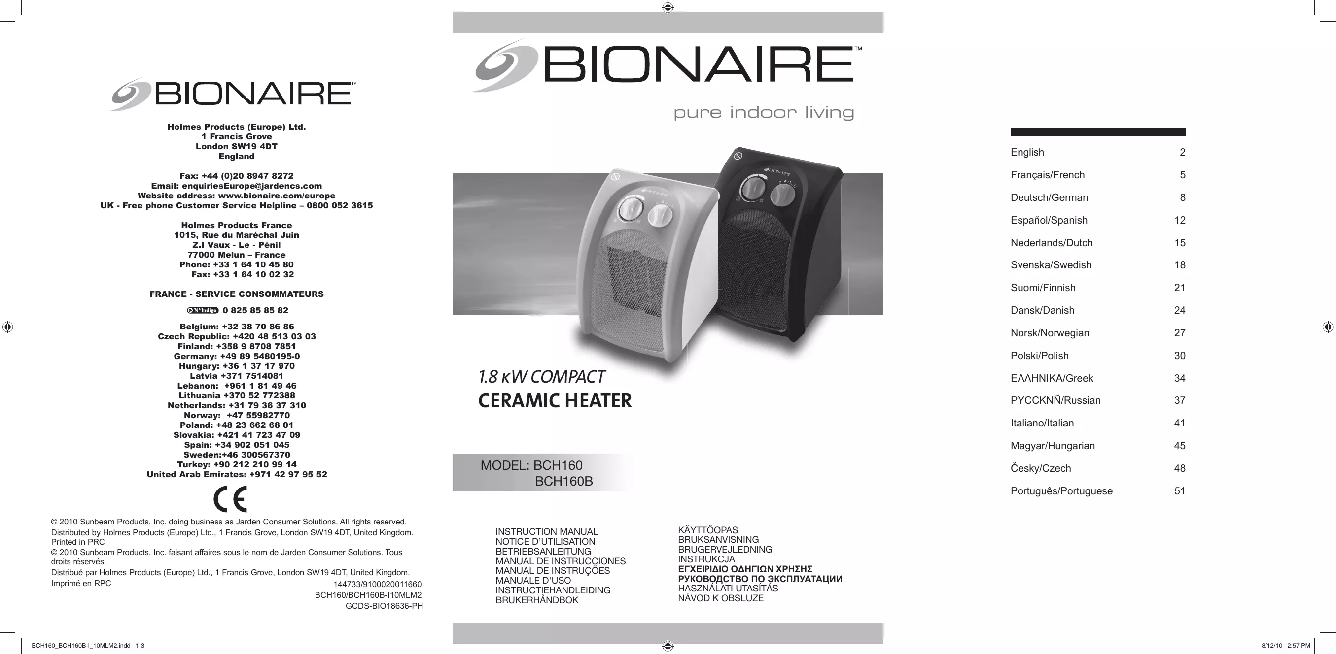 Retrouvez gratuitement la notice de l'appareil BCH160B-I BIONAIRE au format PDF.