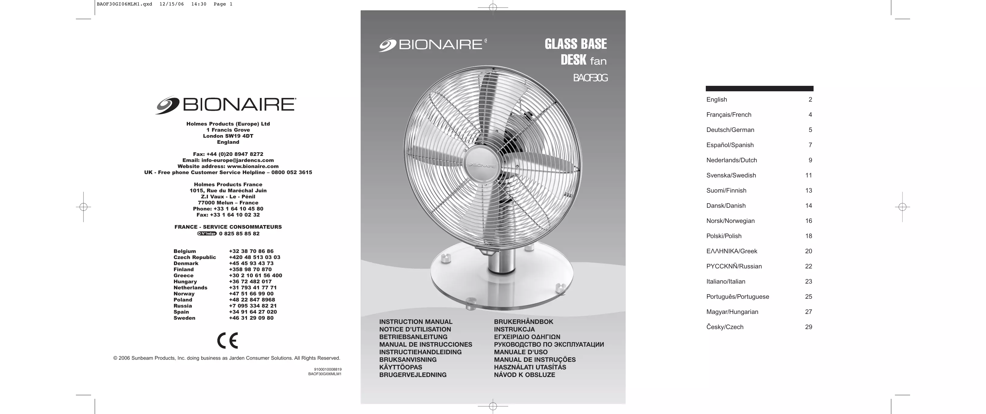 Allez au site Web ci-dessous pour plus d’informations sur le recyclage et la directive WEEE : www.bionaire.com ou par e-mail à info-europe@jardencs.com