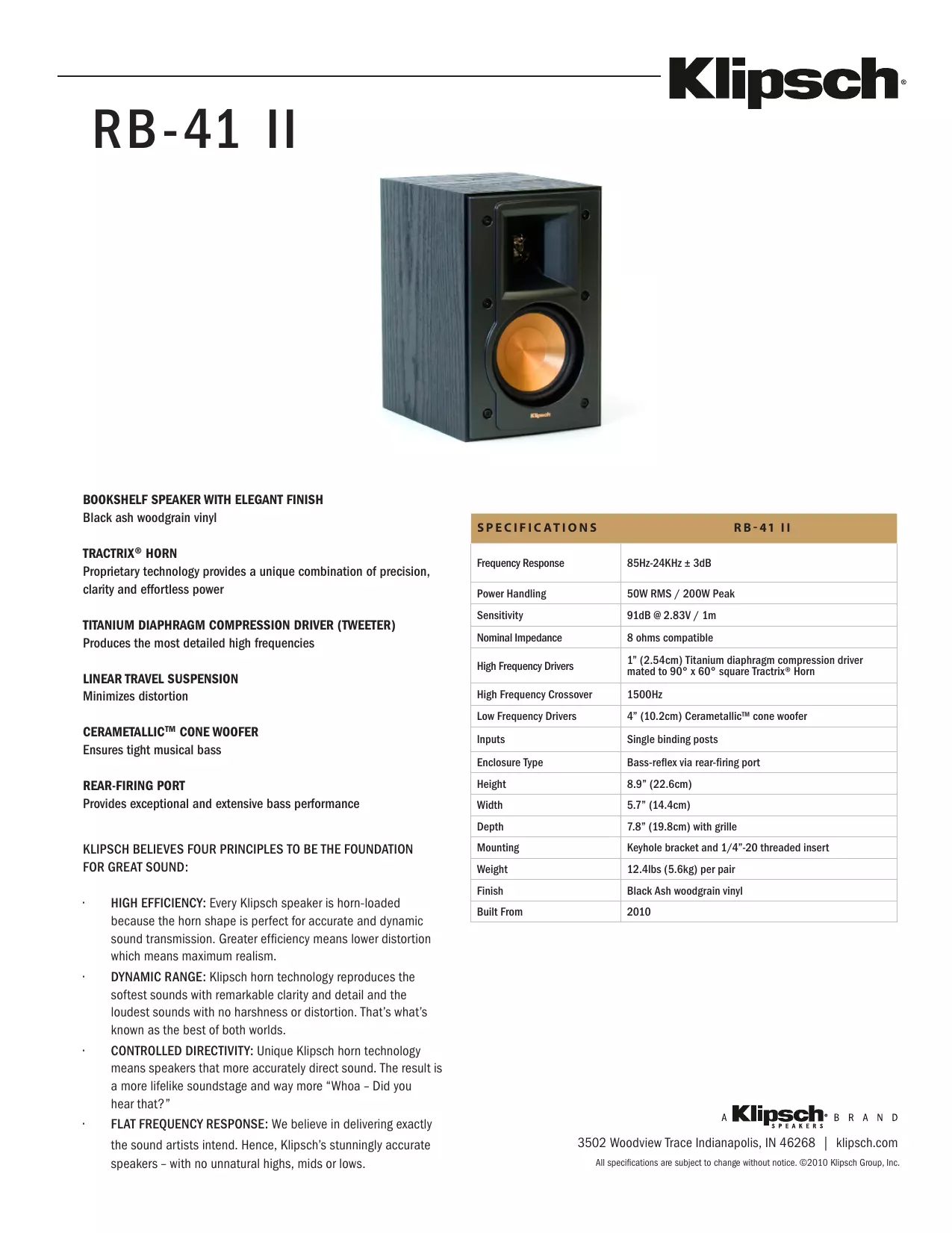 RB-41 MKIT - Enceinte audio KLIPSCH - Notice d'utilisation et mode d'emploi gratuit