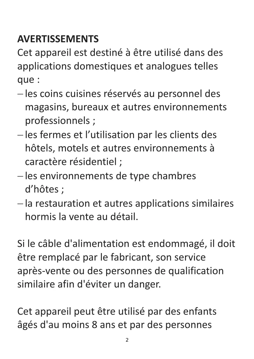 Cet apparéil est destiné à être utilisé dans des applications domestiques et analogues telles que :