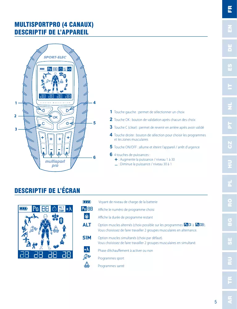 MULTISPORTPRO - Électrostimulateur SPORT ELEC - Notice d'utilisation et mode d'emploi gratuit