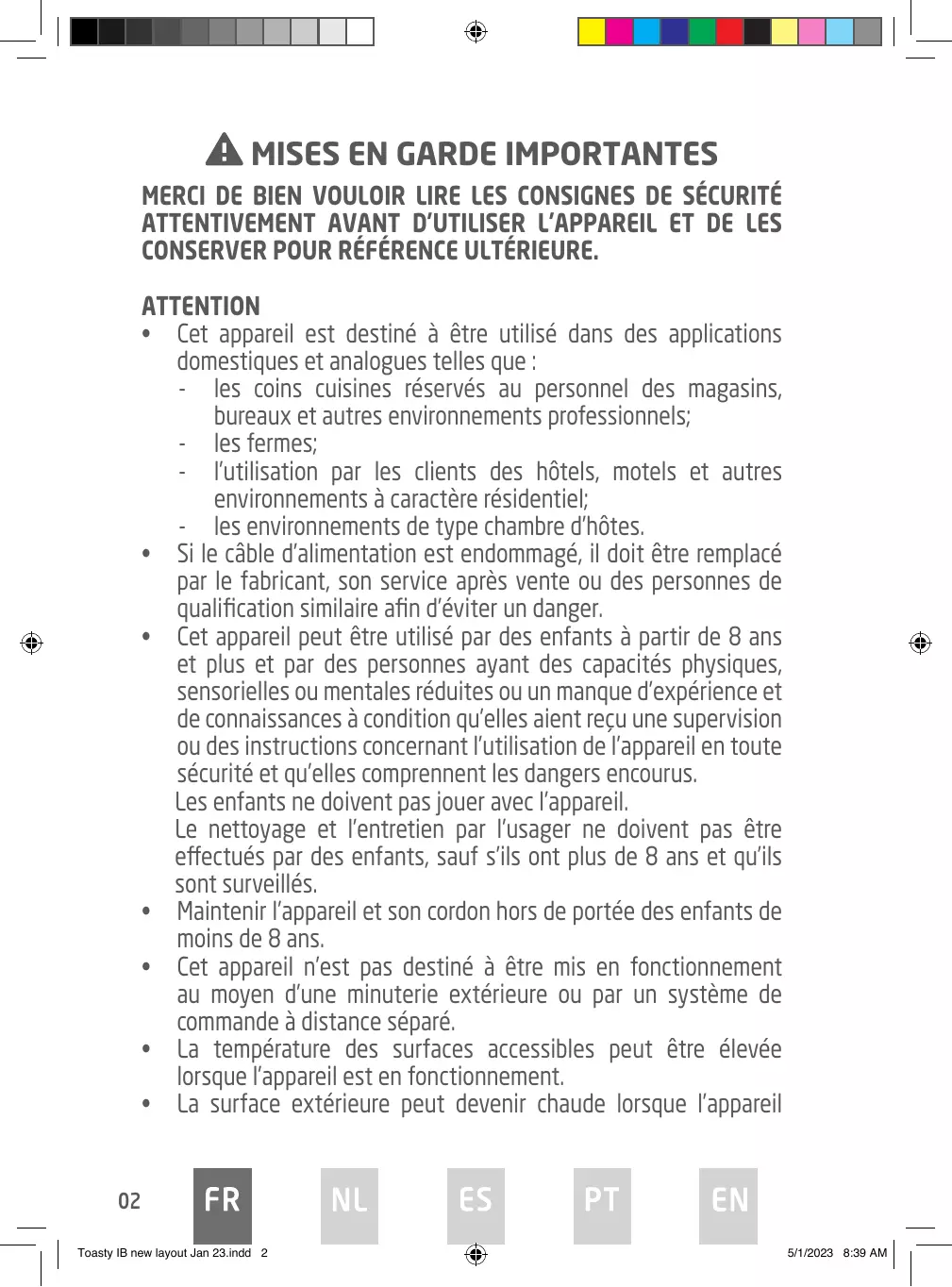 Le nettoyage et l'entretien par l'usager ne doit pas etre effectués par des enfants, sauf sils ont plus de 8 ans et quils sont surveillés.