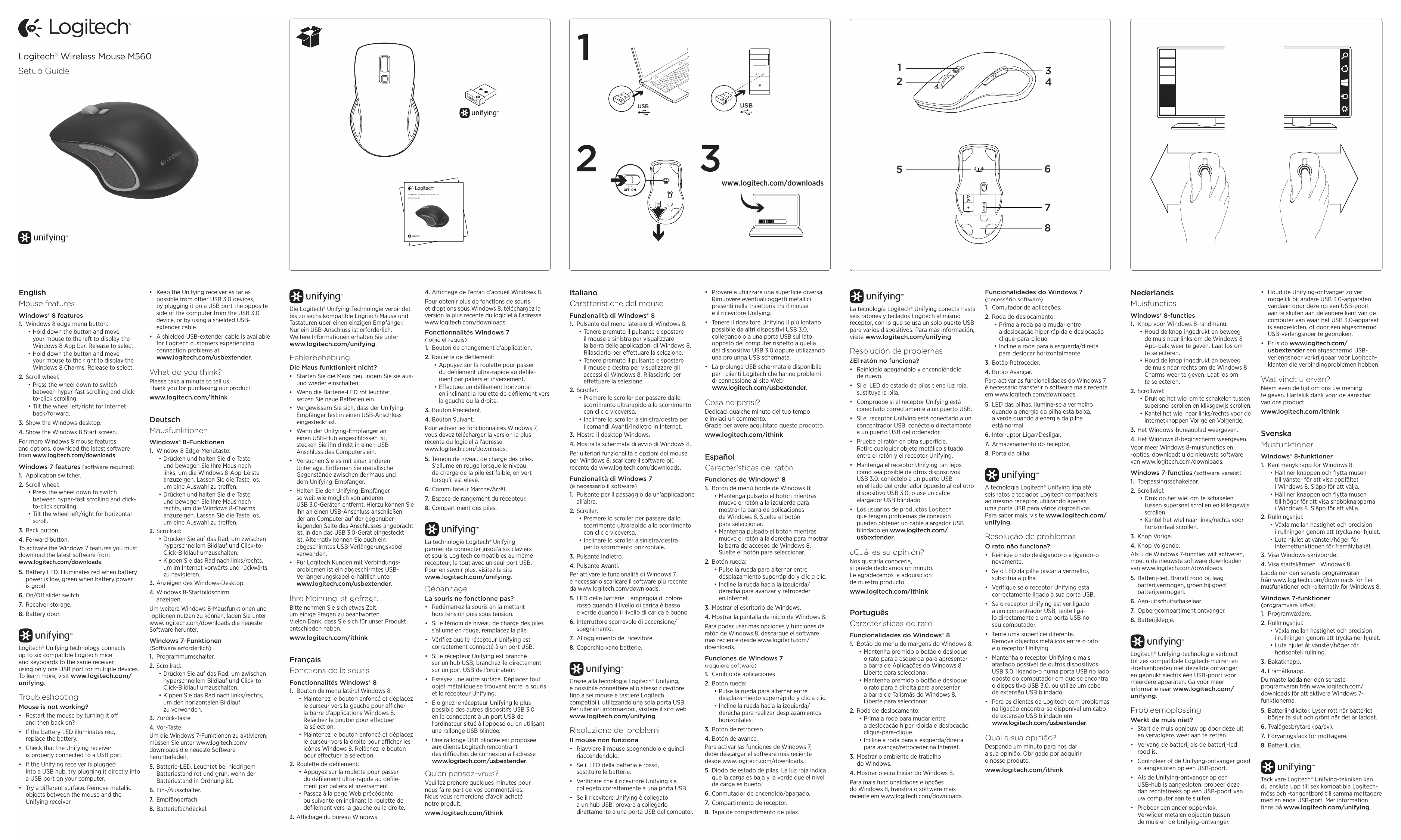 - Une rallonge USB blindée est proposée aux clients Logitech rencontrant des difficultés de connexion à l’adresse www.logitech.com/usbextender. Qu’en pensez-vous? Veuillez prendre quelques minutes pour nous faire part de vos commentaires. Nous vous remercions d’avoir acheté notre produit. www.logitech.com/ithink Italiano Caratteristiche del mouse Funzionalità di Windows® 8