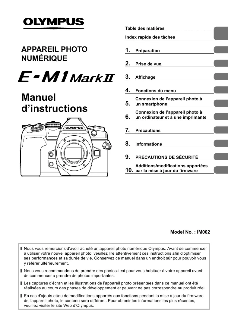 E-M1 MARK 2 - Appareil photo numérique OLYMPUS - Notice d'utilisation et mode d'emploi gratuit