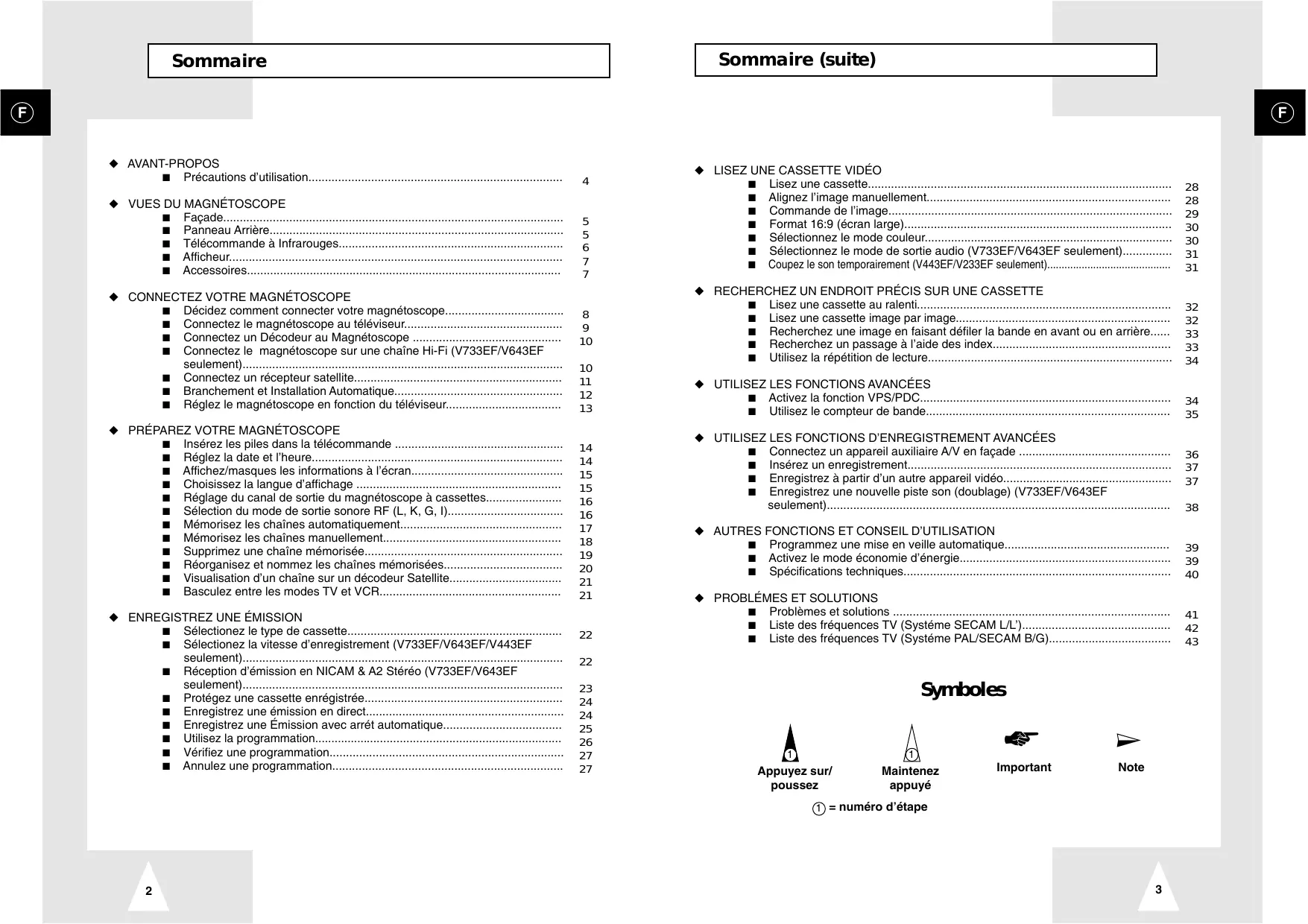 MAGNÉTOSCOPE V733EF/V643EF V443EF/V233EF Mode d’emploi