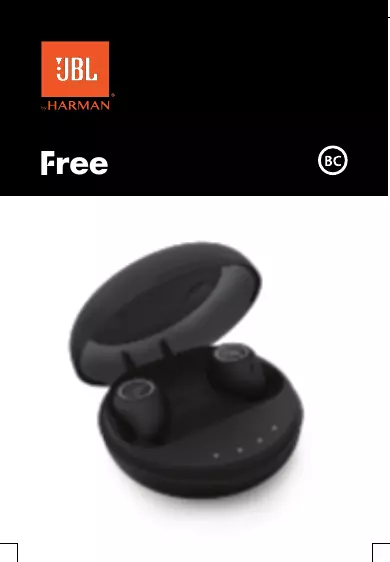 Quick Start Guide Guide de démarrage rapide IC RF Exposure Information and Statement The SAR limit of Canada (C) is 1.6 W/kg averaged over one gram of tissue. Device types: (IC: 6132A-JBLFREE) has also been tested against this SAR limit According to this standard, the highest SAR value reported during product certification for head use is 0.049 W / kg. The device was tested for typical bodily operations where the product was kept 5 mm from the head. To maintain compliance with IC RF exposure requirements, use accessories that maintain a separation distance of 0mm between the user's head and the back of the headset. The use of belt clips, holsters and similar accessories shall not contain metal parts in its assembly. Use of accessories that do not meet these requirements may not comply with IC RF exposure requirements and should be avoided. Head operation The device was subjected to a typical head manipulation test. In order to comply with RF exposure requirements, a minimum separation distance of 0 cm must be maintained between the user's ear and the product (including the antenna). Head exposure that do not meet these requirements may not meet RF exposure requirements and should be avoided. Use only the supplied or approved antenna. IC: 6132A-JBLFREE Informations et énoncés sur l’exposition RF de l’IC. La limite DAS du Canada (C) est de 1,6 W/kg, arrondie sur un gramme de tissu. Types d’appareils: (IC: 6132A-JBLFREE) a également été testé en relation avec cette limite DAS selon ce standard. La valeur DAS la plus élevée mesurée pendant la certification du produit pour une utilisation au niveau de la tête est de 0,049 W / kg. L’appareil a été testé dans des cas d’utilisation typiques en relation avec le corps, où le produit a été utilisé à 5 mm de la tête. Pour continuer à respecter les standards d’exposition RF de l’IC, utilisez des accessoires qui maintiennent une distance de séparation de 0 mm entre la tête de l’utilisateur et l’arrière du casque. L’utilisation de clips de ceinture, d’étui ou d’accessoires similaires ne doivent pas contenir de pièces métalliques. Les accessoires ne respectant pas ces exigences peuvent ne pas respecter les standards d’exposition RF de l’IC et doivent être évités. Utilisation au niveau de la tête L’appareil est testé dans un cas d’utilisation typique autour de la tête. Pour respecter les standards d’exposition RF, une distance de séparation minimum de 0 cm doit être maintenue entre l’oreille et le produit (antenne comprise). L’exposition de la tête ne respectant pas ces exigences peut ne pas respecter les standards d’exposition RF et doit être évité. Utilisez uniquement l’antenne incluse ou une antenne certifiée. IC: 6132A-JBLFREE