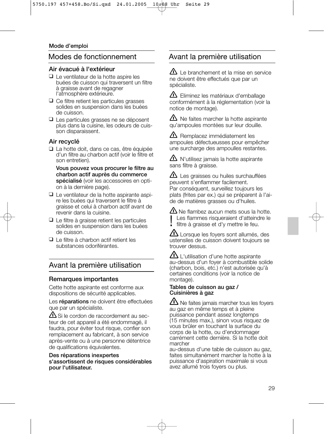 ❑ Voir les instructions relatives au filtre à graisse. 5750.197 457+458.Bo/Si.qxd