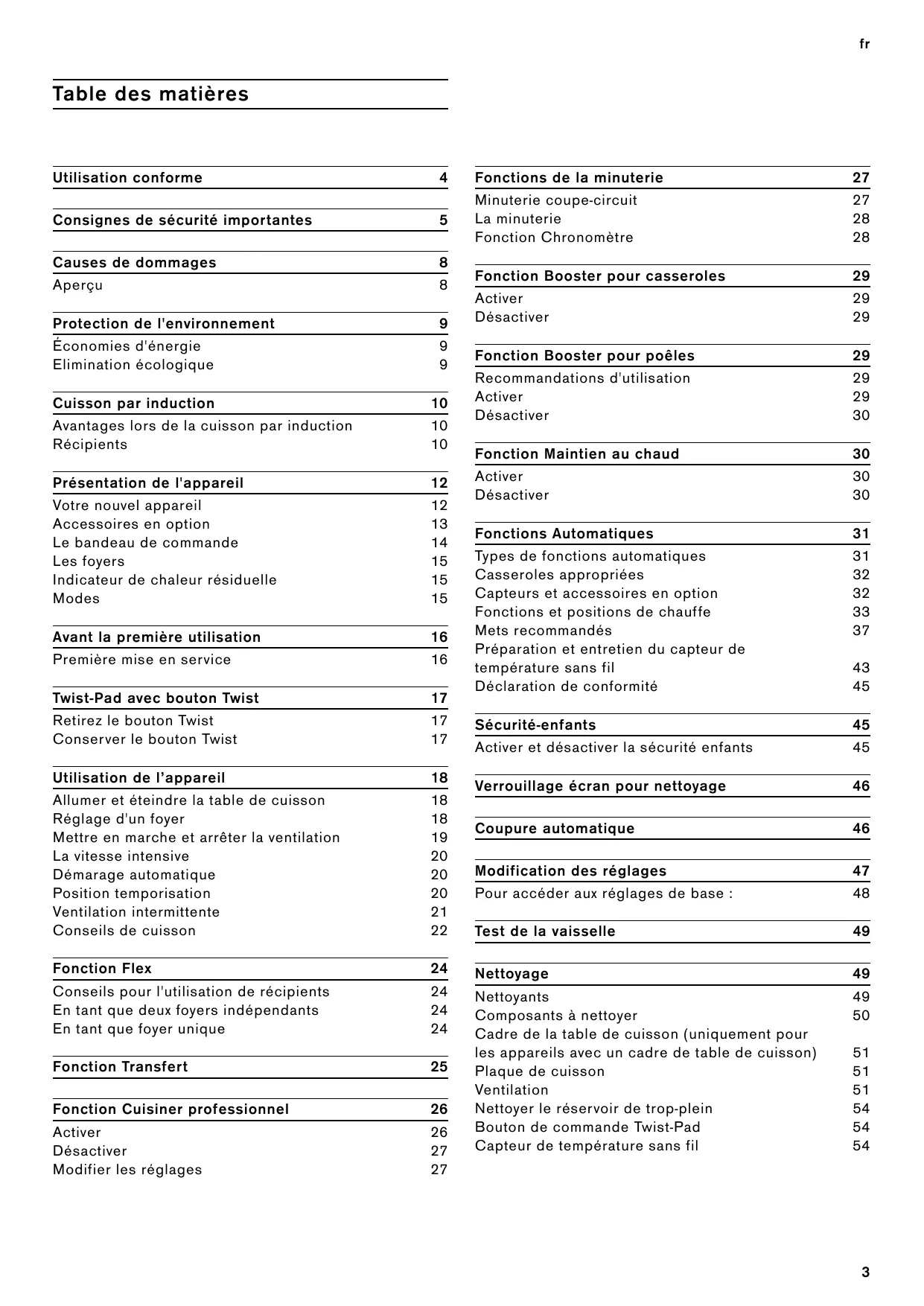 Cadre de la table de cuisson (uniquement pour les apparèils avec un cadre de table de cuisson) 51