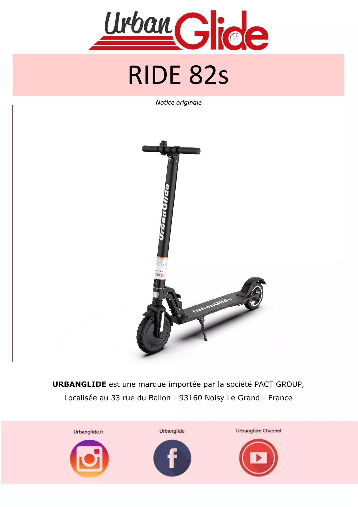 RIDE 82s Notice originale URBANGLIDE est une marque importée par la société PACT GROUP, Localisée au 33 rue du Ballon - 93160 Noisy Le Grand - France SOMMAIRE