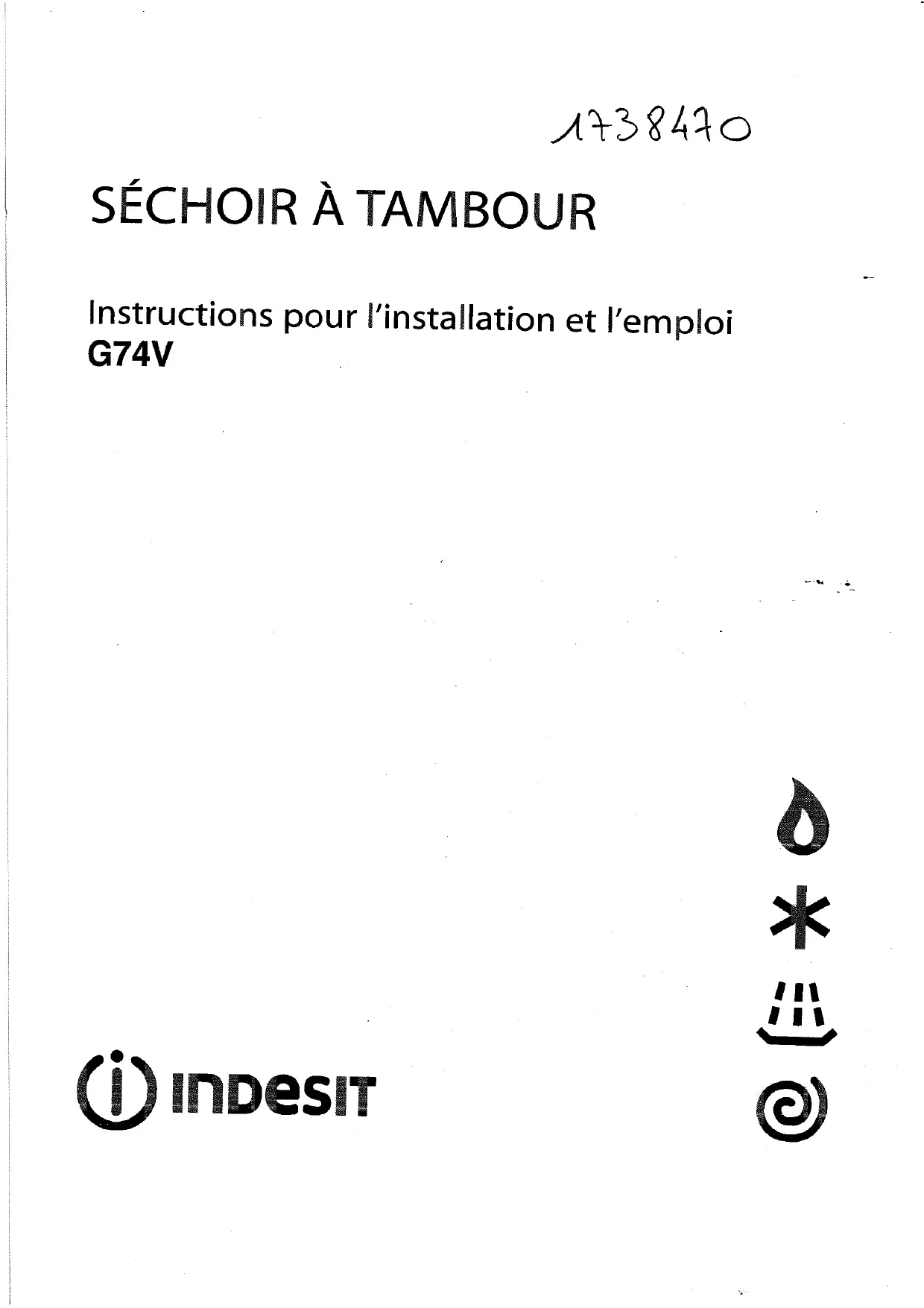 Téléchargez la notice de votre Sèche-linge au format PDF gratuitement ! Retrouvez votre notice G74 VCO - INDESIT et reprennez votre appareil électronique en main. Sur cette page sont publiés tous les documents nécessaires à l'utilisation de votre appareil G74 VCO de la marque INDESIT.