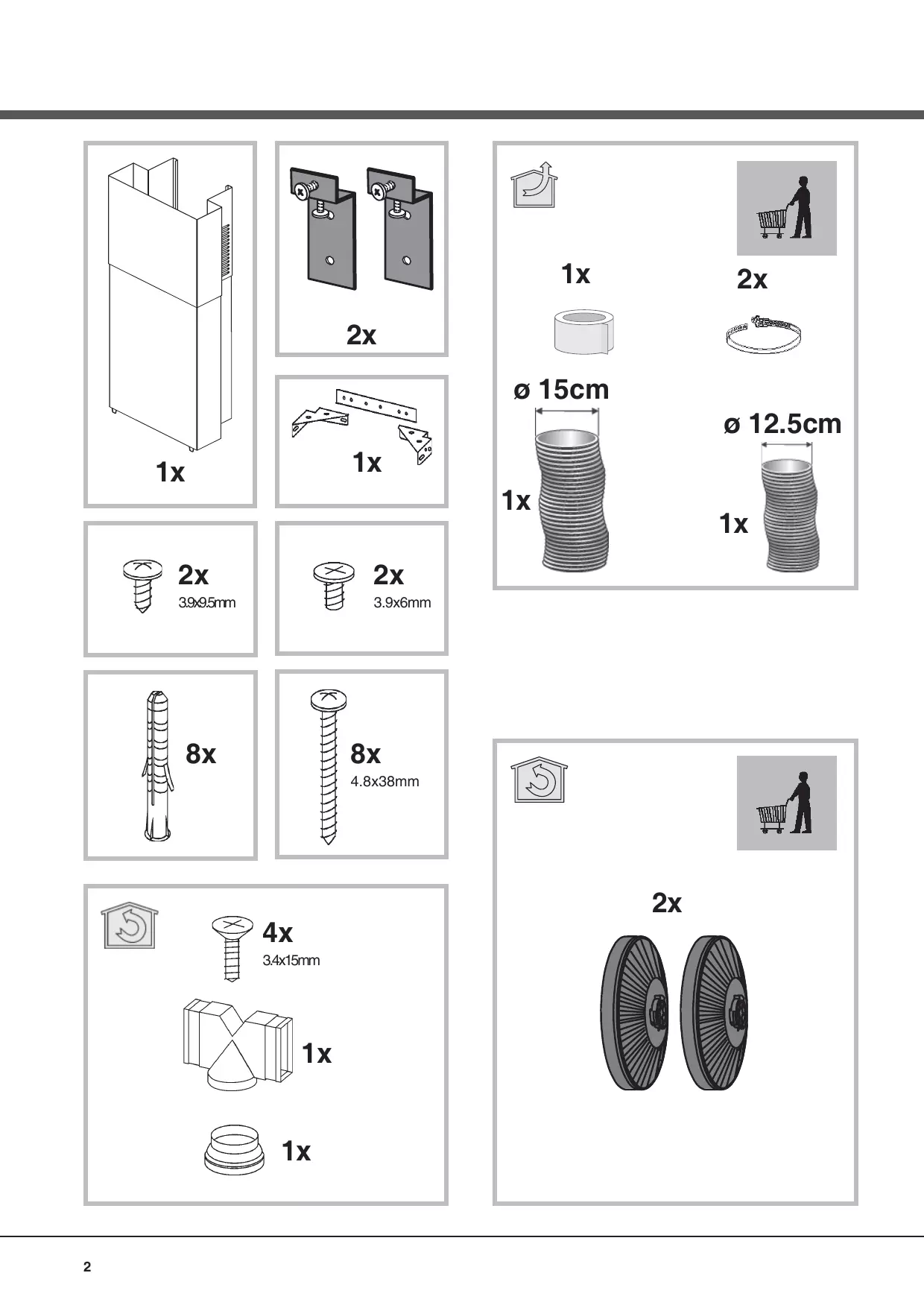 - Si la hotte s'éteint durant son fonctionnement normal: S'assurer: - de l'absence de coupure de courant. - que le dispositif d'interruption omnipolaire ne s'est pas déclenché. Éléments non fournis avec la hotte