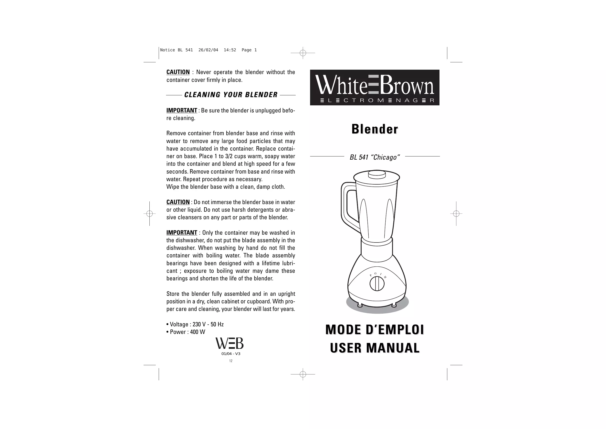BL541 CHROME B VERRE - Blender WHITE AND BROWN - Notice d'utilisation et mode d'emploi gratuit