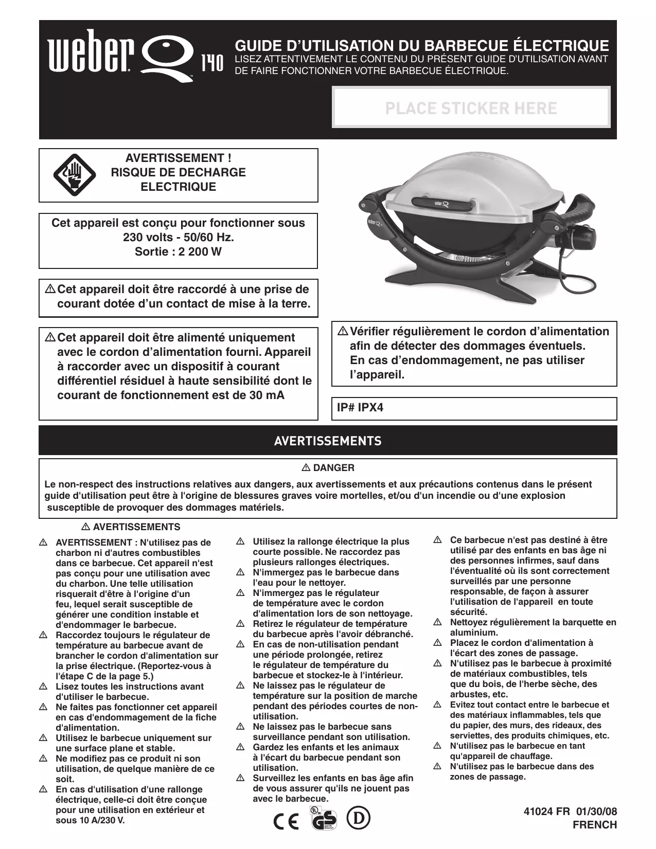 522053 Q140 GRIS ANT - Barbecue électrique WEBER - Notice d'utilisation et mode d'emploi gratuit
