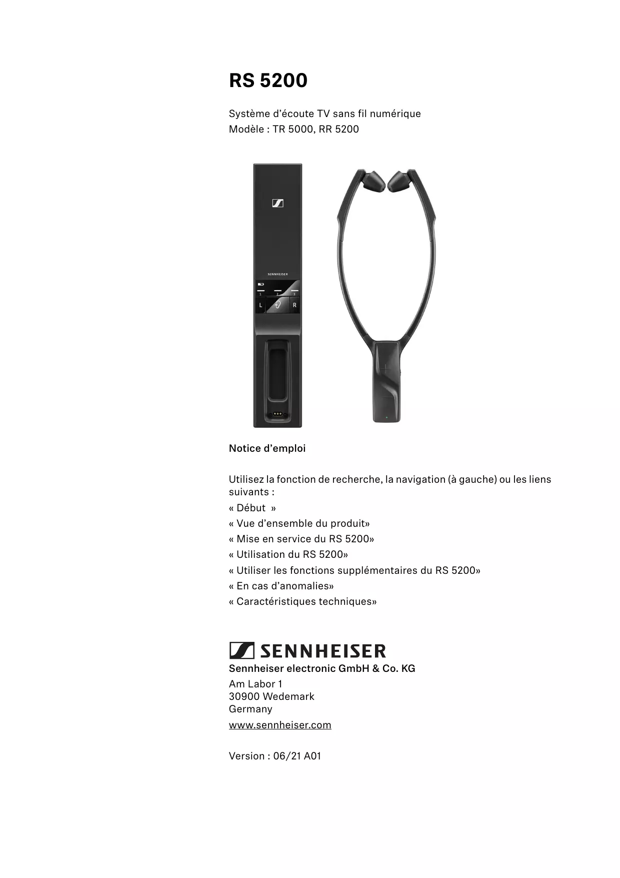 Retrouvez gratuitement la notice de l'appareil TVRS5200 SENNHEISER au format PDF.